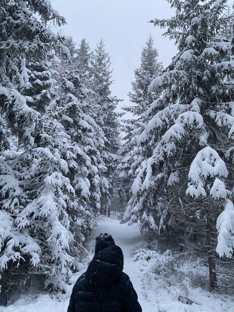 Vinter har vi ja och då kan man njuta av de vackra vita träden och granarna under promenad en. Sedan kan man krypa ihop med en bra bok vid läggdags!