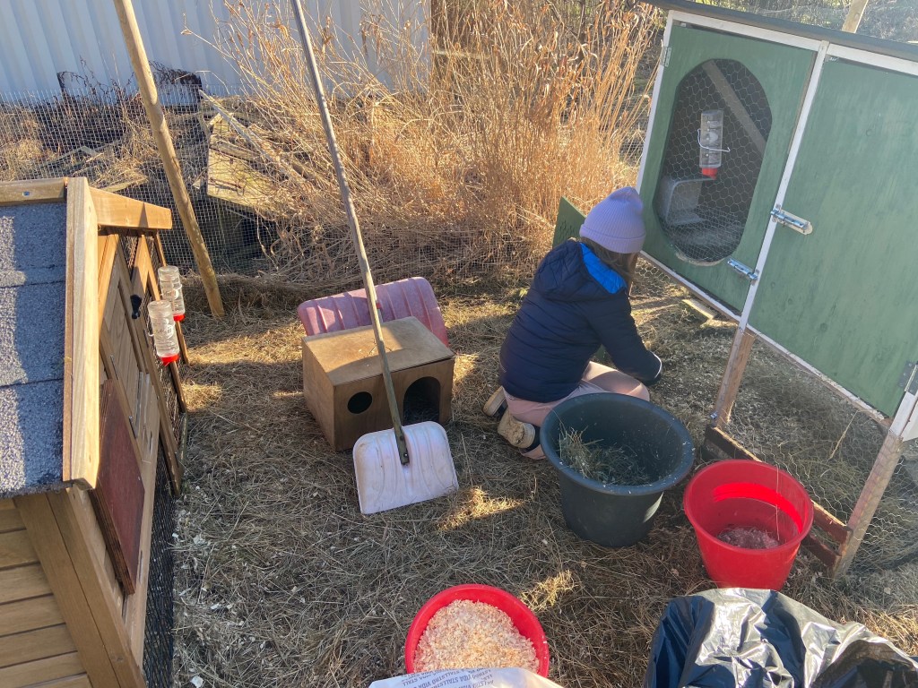 14.00-16.30 Yngsta kommer hem från skolan, det har varit helt okej, rapporterar hon, och jag blir så glad! Hon är också uppåt eftersom jag lovat att vi ska åka till samhället och köpa kläder. Vi ser till kaninerna innan vi åker, ger dem hö och lovar att de ska få gå ut senare.