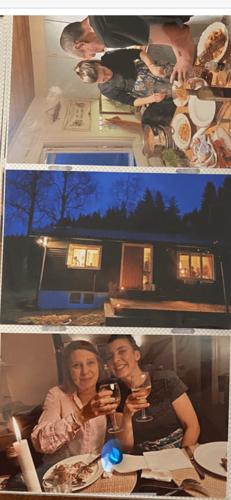 Syrran med familj bjöd oss till stugan de hyrt och det hade vi nog kommit ihåg, i några år. Men hade jag inte haft bilderna hade det förmodligen fallit bort att jag var extra glad att jag var vegetarian eftersom jag fick en ljuvlig kantarellpasta kryddad med saffran, medan de andra fick en rätt med köttfärs. Eller att det kom ett tunt snötäcke under kvällen, och att marschallerna lyste så fint på trappen. Samt att vi spelade julklappsspelet. När yngsta såg bilden när vi spelade (inte med här) sa hon genast: Åh, nu minns jag. Simon fick allt godis. Kontentan är att stunder, ögonblick och minnen betyder så mycket. Även de som inte glittrar😉