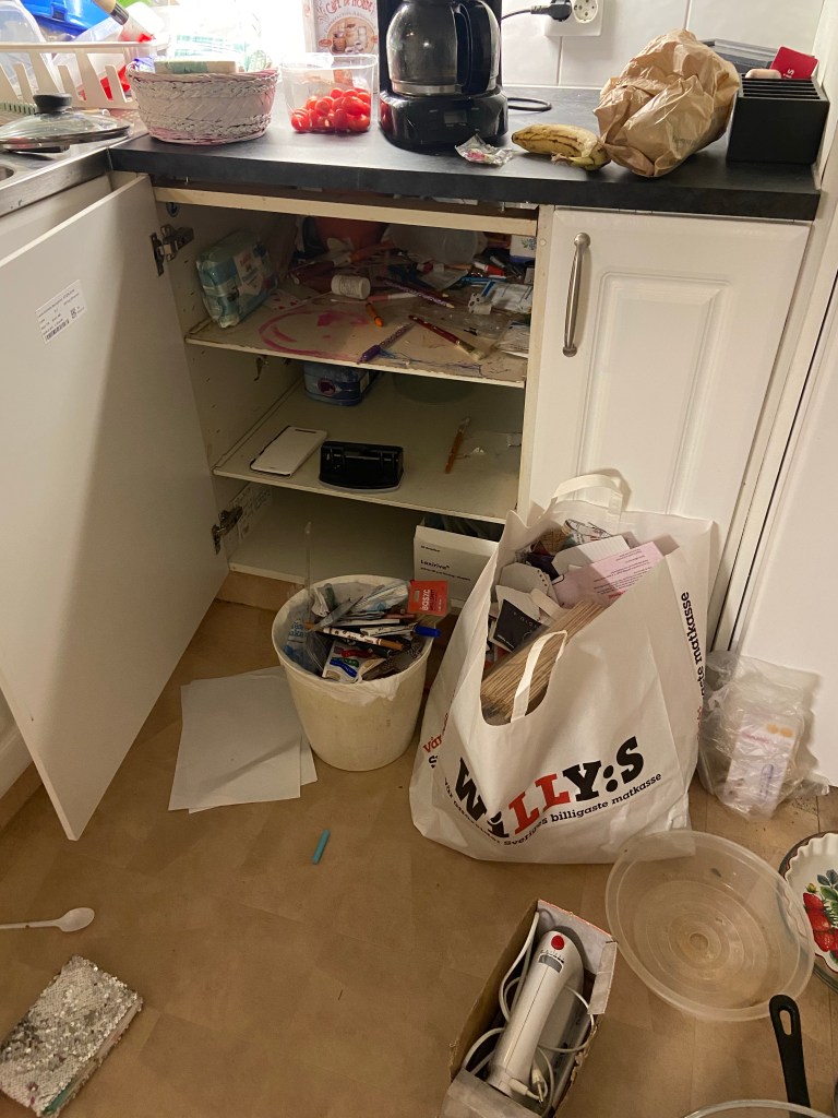 Veckans ovilja att skriva på mitt manus har onekligen fört med sig fördelar. Här är skåpet jag rensade ur kl 07.00 i onsdags morse.