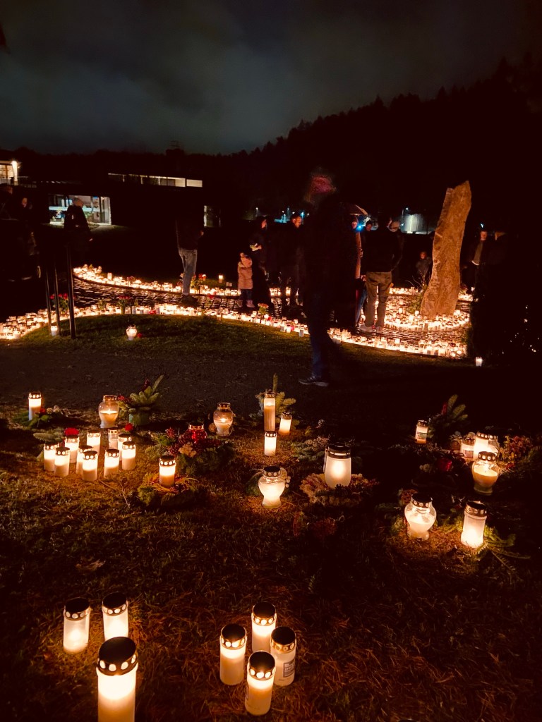 I går gick jag och mamma på minnesgudstjänst i kyrkan där pappa begravdes. Det var stämningsfullt, och tårarna rann. Efteråt värmde kaffe och personalens vänlighet, och när vi väl kom till kyrkogården blev vi på bättre humör när vi lyckades hitta parkering. Och sedan, så vackert!
