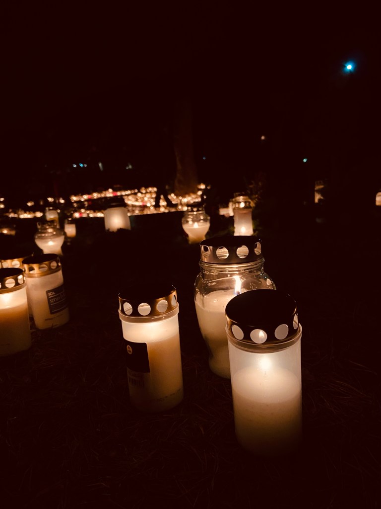 Stad i ljus, som det sjöngs i kyrkan. Stad i ljus av älskade som inte längre finns här. Du ska veta att vi saknar dig oändligt, pappa. Det finns så mycket vi skulle berätta om du kom tillbaka. Vi skulle krama dig och vi skulle inte, aldrig släppa taget.