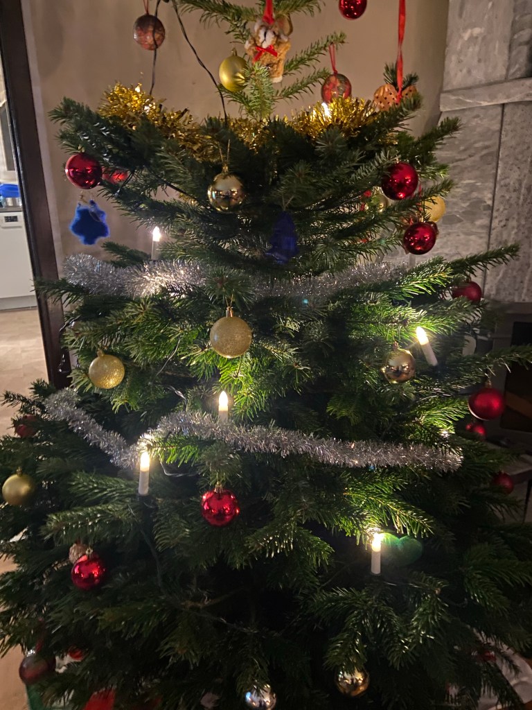 Och sedan åkte vi hem och åt lunch framför serien vi följer just nu, Succession. På kvällen var jag lite piggare och vi klädde granen.