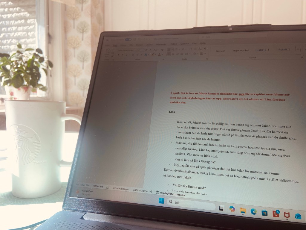 Jag är så tacksam att jag skriver på ett manus som faktiskt börjar bli klart, även om jag inte riktigt är där än.