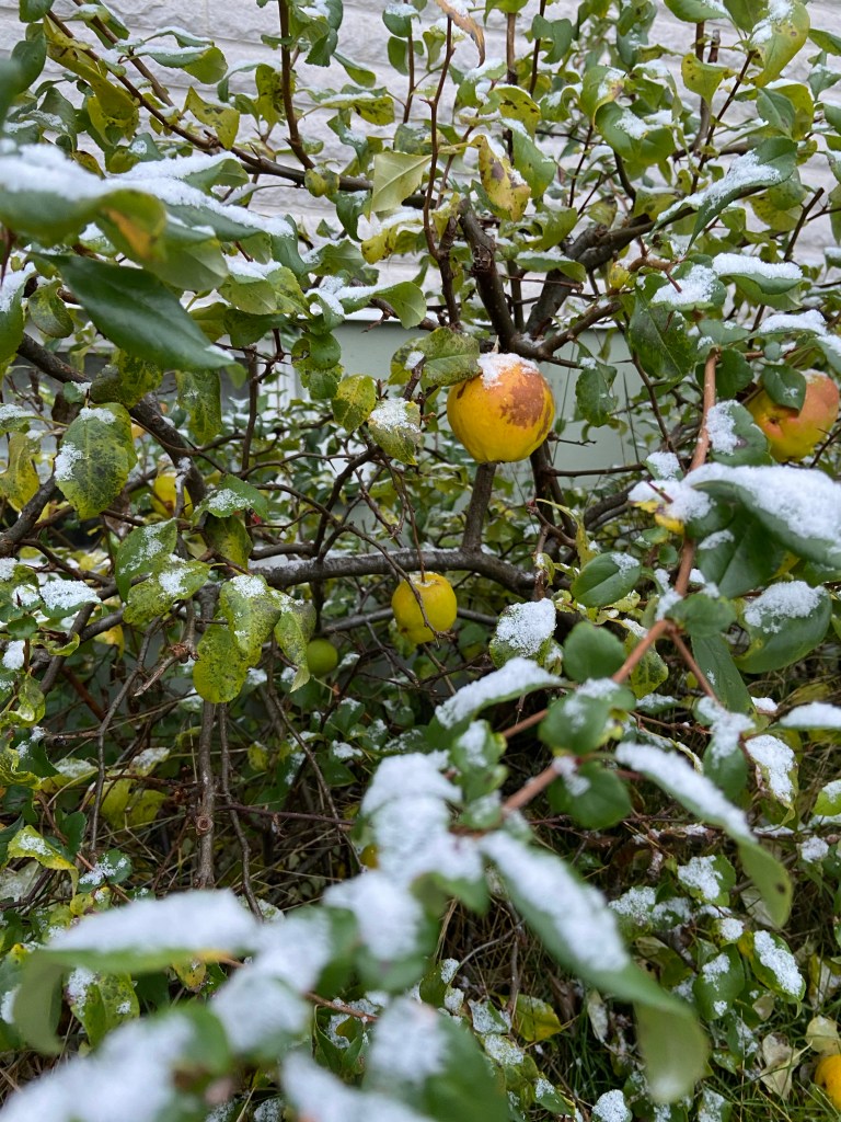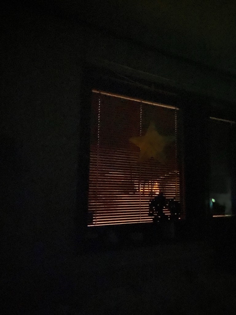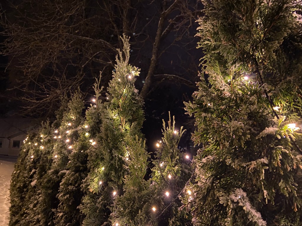 Fortfarande snö ute, men mycket mildare. Och mörker som lyses upp av all utebelysning.