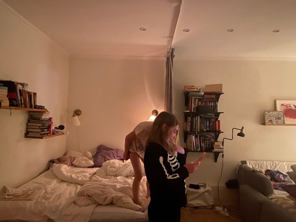 Yngsta sover hos en kompis, och äldsta dottern har gått tre promenader med lurar, och en vän i öronen. Jag trodde att hon grät när hon kom innanför dörren sista gången, men hon skrattade så att hon tjöt🙏Det är livet på en pinne, det😄