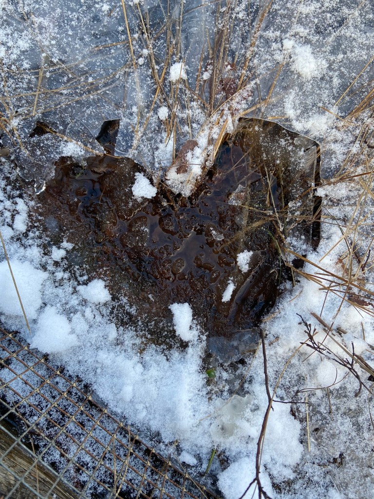 Kallt och isigt, men likväl ett hjärta som min yngsta formade med stöveln för några veckor sen