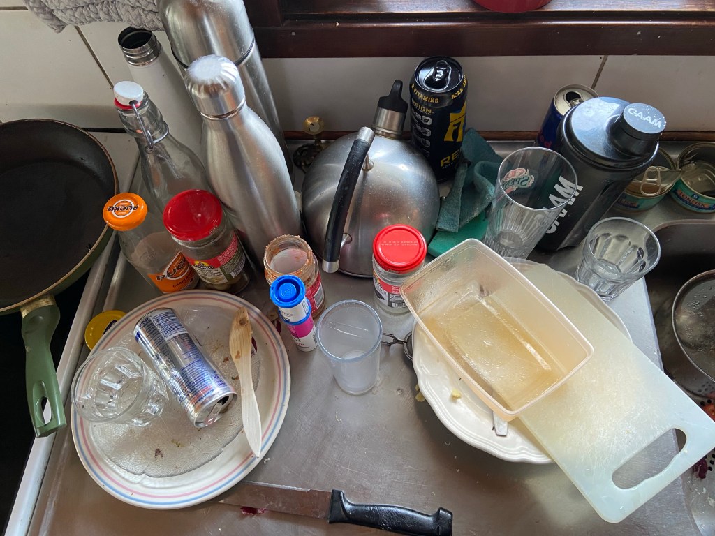 Fredag, sen eftermiddag: Jag var ensam hemma två timmar. Efter att ha sovit en stund gick jag upp och tog itu med stöket, diskbänken först.