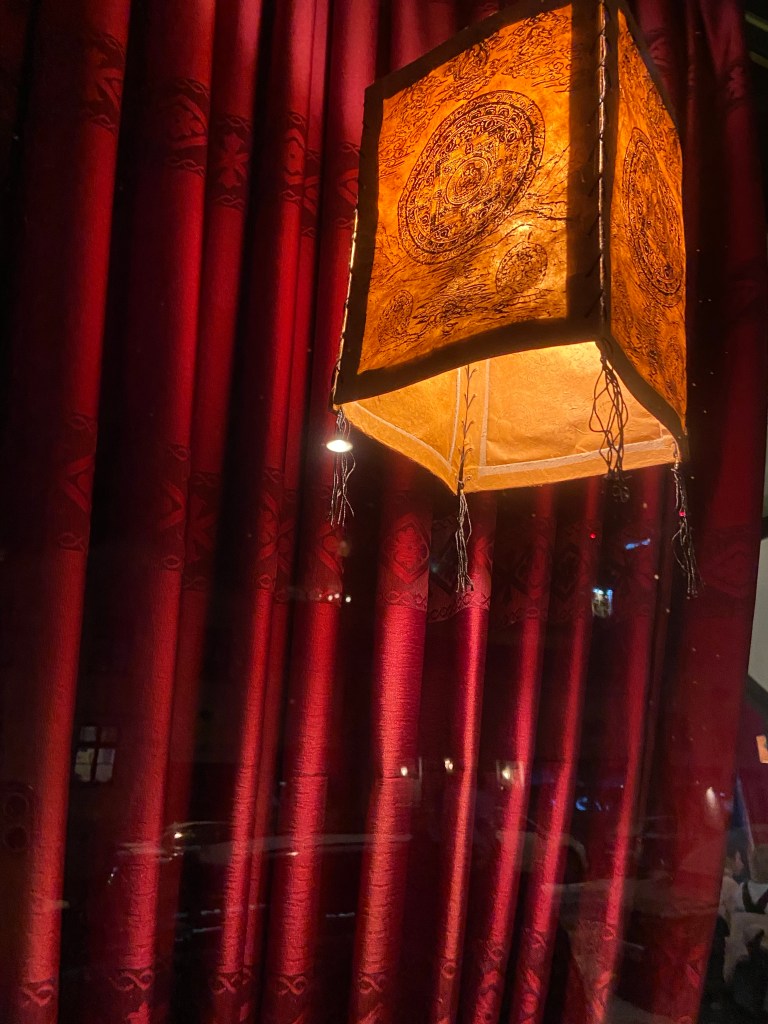 Vy från sängen, rummet upplyst av min rymdlampa. Möjligtvis lite knäppt att skaffa en vid 48 års ålder, men sån är jag😌