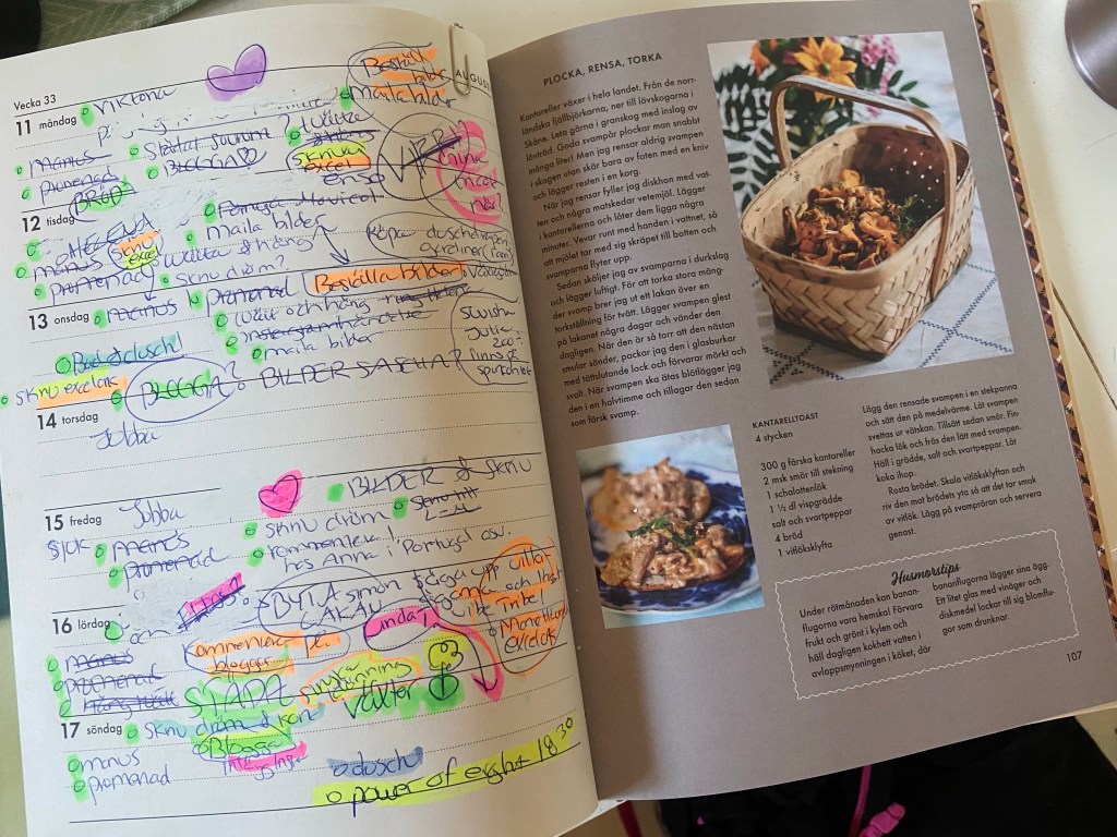 Jag har påminnelser på mobilen som alla andra men tycker mest om fysiska almanackor.