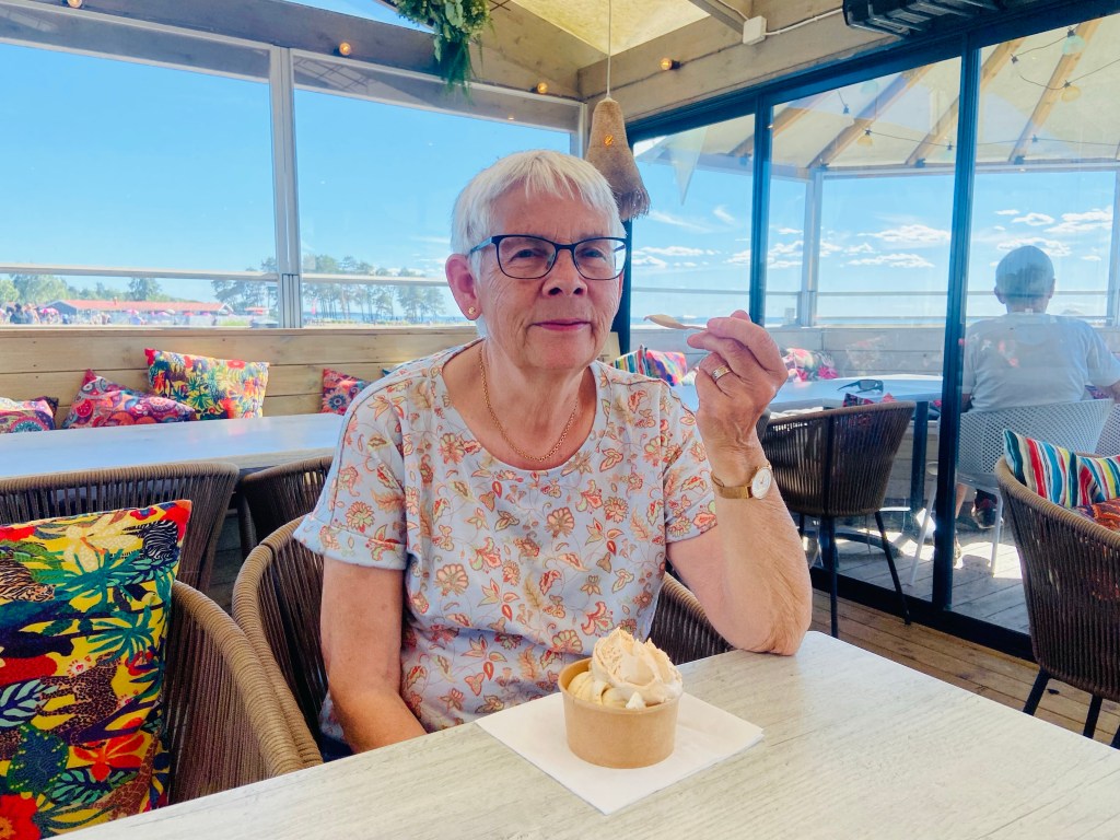Solen glittrade i havet och tårar glänste i ögonen ibland. Mamma och pappa har visst varit överallt häromkring. Har minst ett favorit-glasscafé, och likadant med restauranger. Pappa har besökt kyrkan vi tände ljus i för honom, och sovit på samma hotell där vi var i natt.