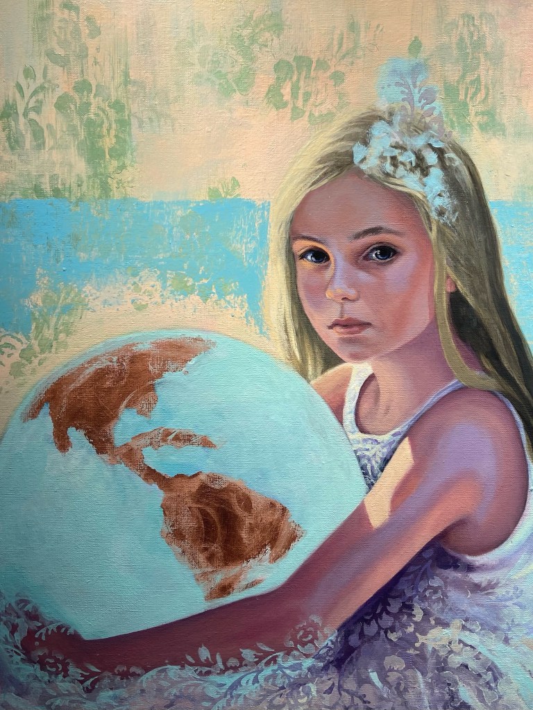 Denna tavla jag köpte nyss (konstnären heter @ninaoldbergart på Instagram) påminner mig om att vi alla bor på denna planet tillsammans och kanske därför borde dela mer – även dem vi inte känner kan vara vänner